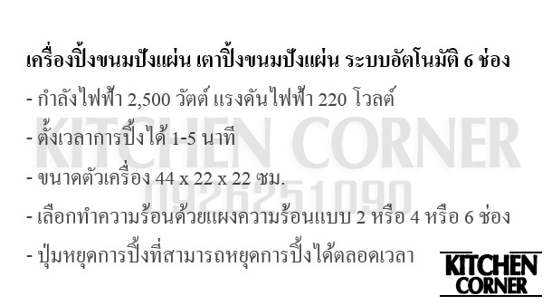 เครื่องปิ้งขนมปังแผ่น เตาปิ้งขนมปังแผ่น 6 ช่อง
